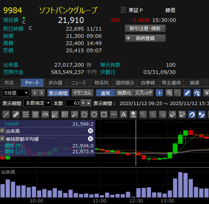 うまくいかなったキオクシア。10時過ぎにいちおうGCしているが、明確でないし出来高ない。こんなのは買いに行っちゃだめ。「明確ではない=大衆がGC認定しない(だから買わない)」ってことだもんな。