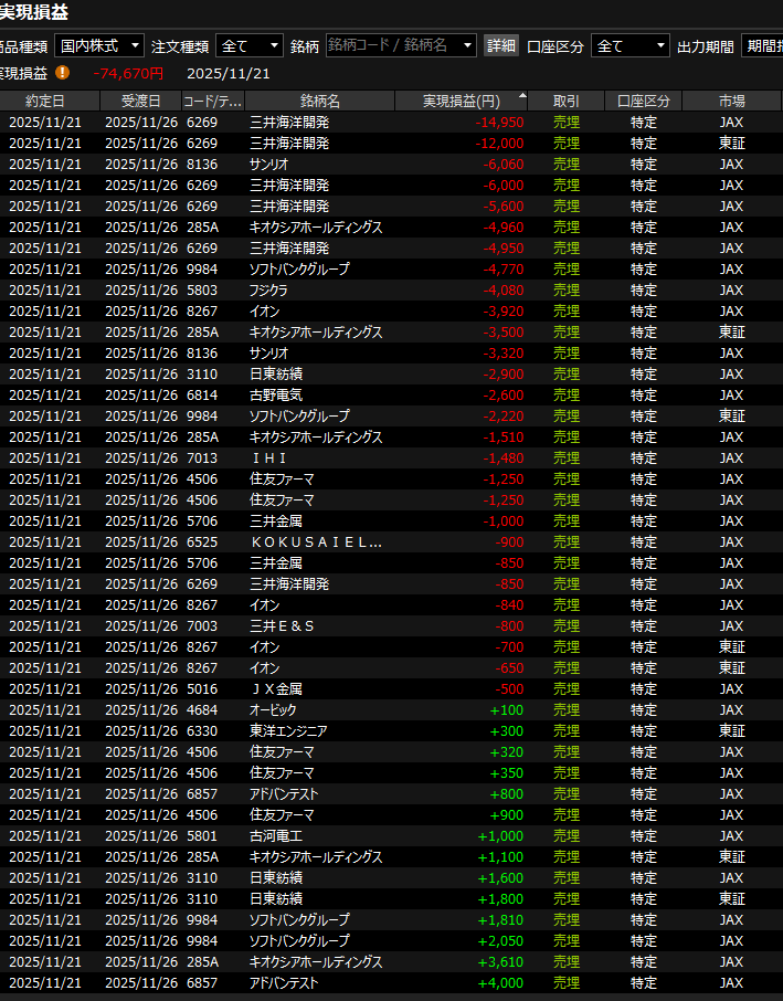 シミュレーションでもよかったのかもしれないが、実際に買ってないと感情が動かない。自分がどのようなメンタルになるのかも知りたくて、実際に売買しながら検証。テストマーケティングのようなもん、必要経費。