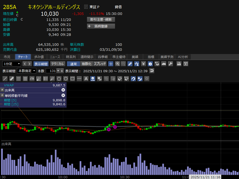 - 出来高急増